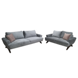 | Materiales | Estructura y patas de madera sólida, tapizada en tela gris |