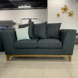 | Materiales: | Estructura de madera sólida, tapizada en tela lino negro con patas de madera |